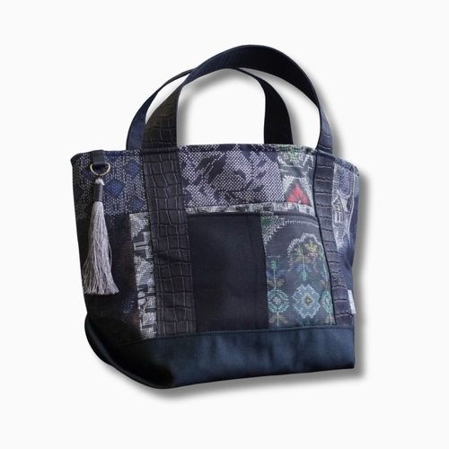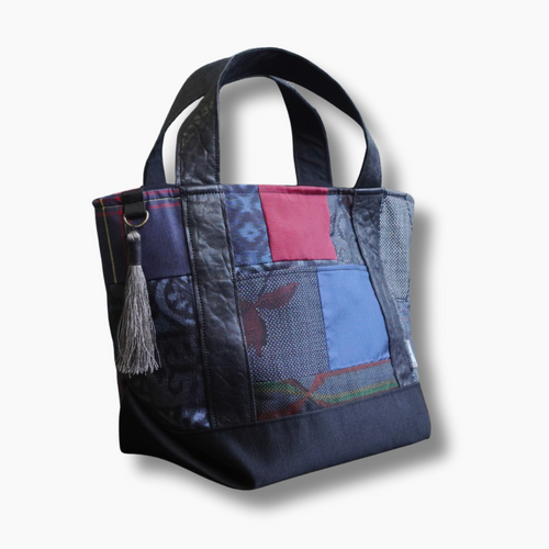 美しい蒼色の帯を使ったトートバッグ アップサイクルバッグ K081
